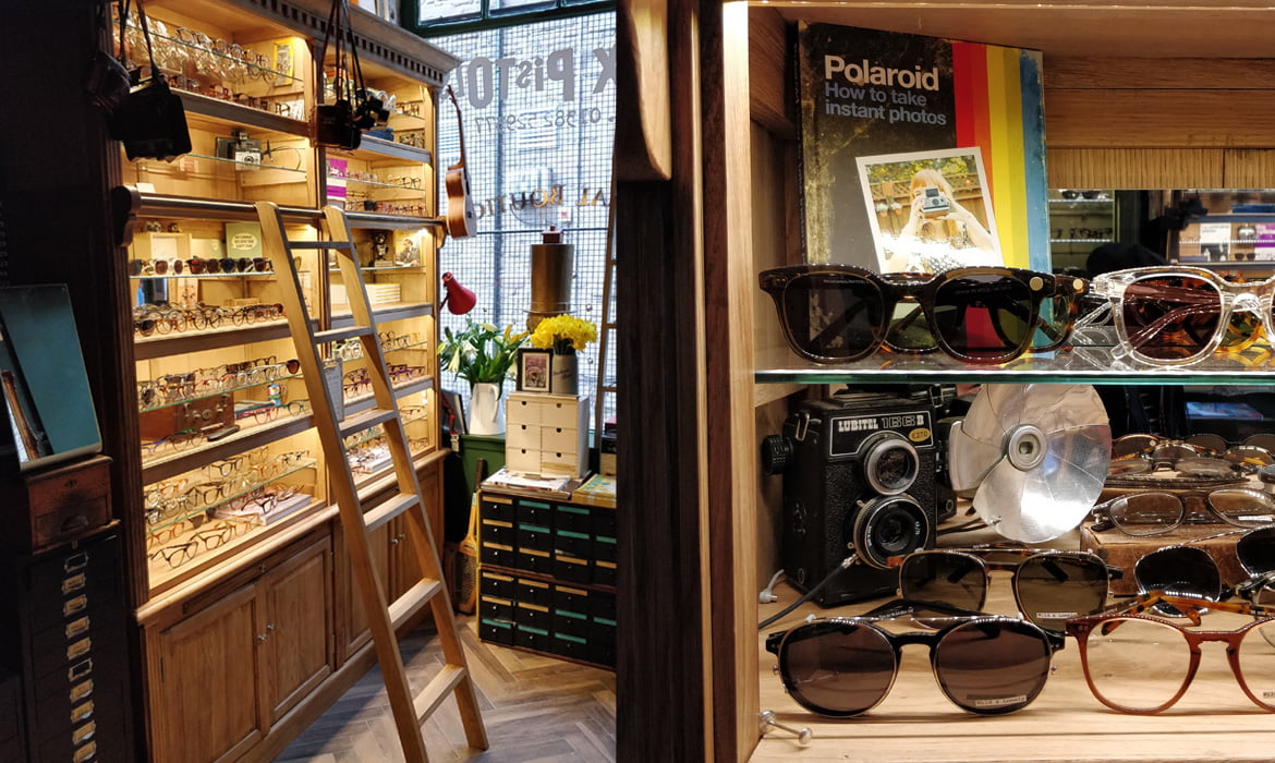 Spex Pistols is an optical boutique (and established social micro-hub) in Dundee’s vibrant West Port area. The shop is polychromatic, curious, vintage and cosy. With a refresh and remodel planned for 2018, the shopfront itself was to be tidied and refinished with new external feature lighting, and the main internal display areas were to get new cabinets with display lighting.